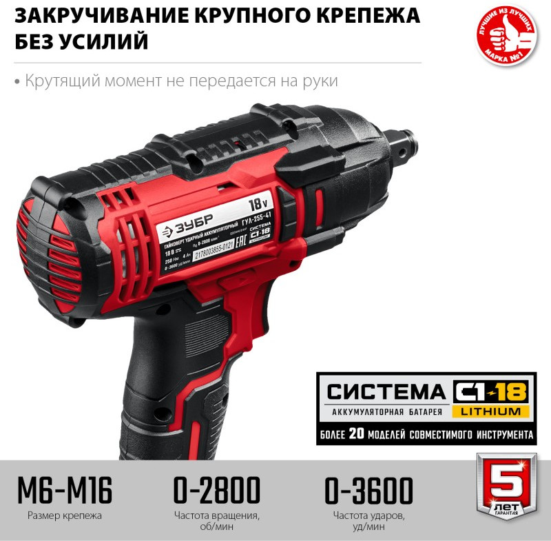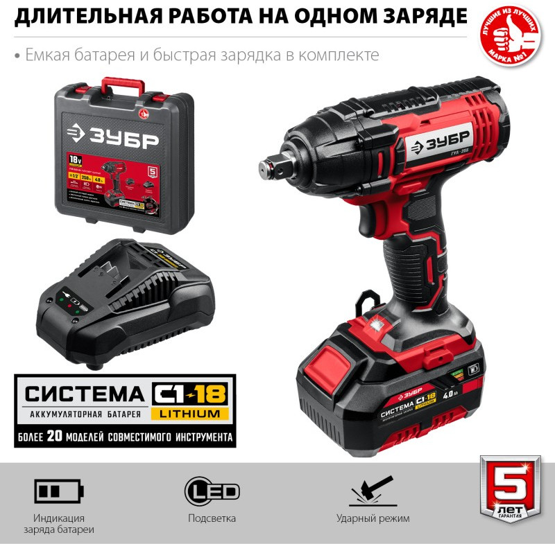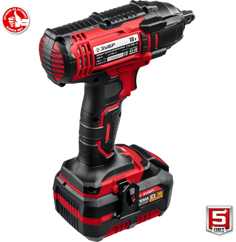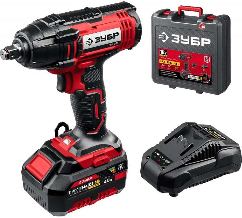 Гайковерт ударный Зубр ГУЛ-255-41 18В, 1 АКБ (4Ач), в кейсе