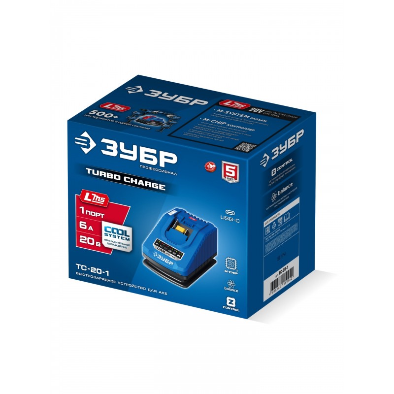 Зарядное устройство Зубр TC-20-1 ЗУБР Turbo CHARGE, 20 В, 1 порт, 1 х 6 А, для LMS АКБ, ПРОФЕССИОНАЛ