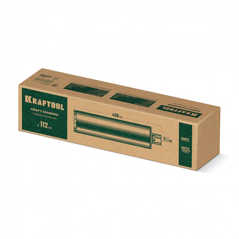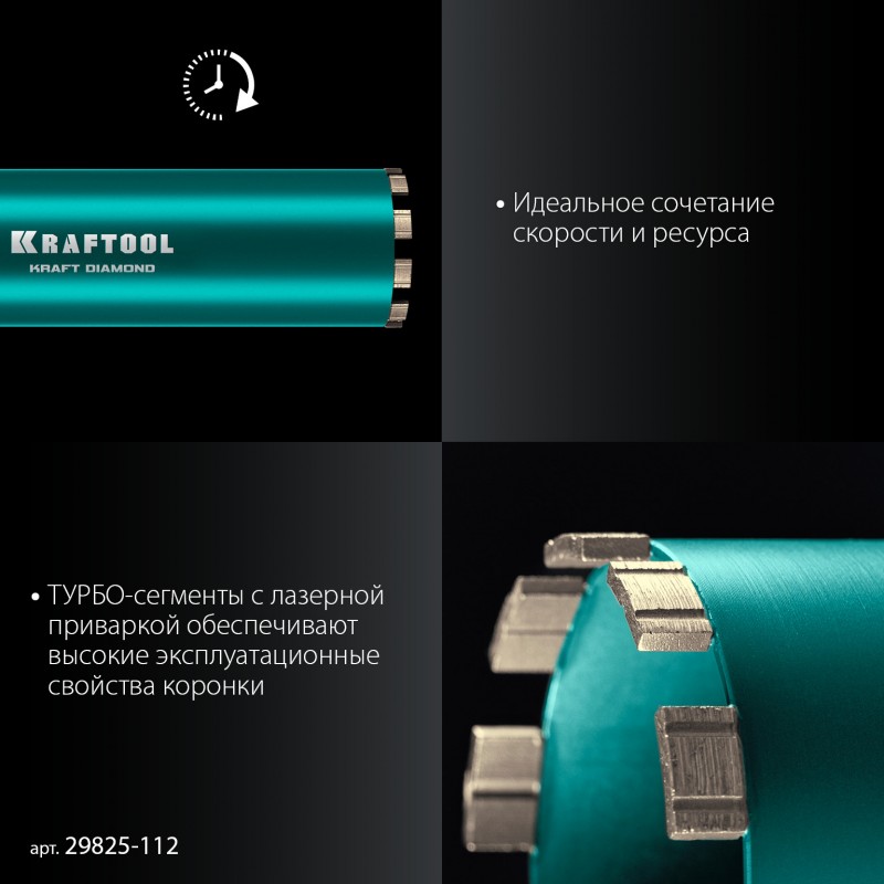 Алмазная Коронка по железобетону KRAFTOOL DIAMOND 112 мм 450 мм, 1 1/4", лазерная сварка сегментов [29825-112]