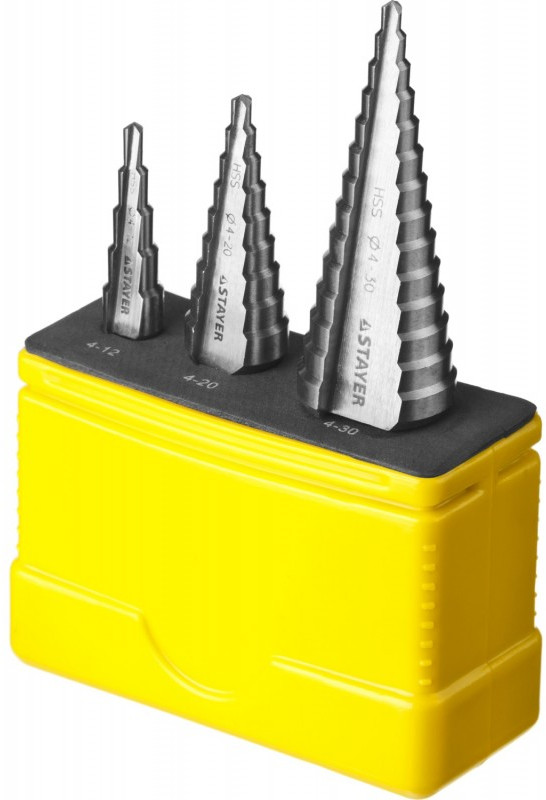 Набор сверл ступенчатых STAYER 4-30мм 3 шт, сталь HSS [29660-4-30-H3]