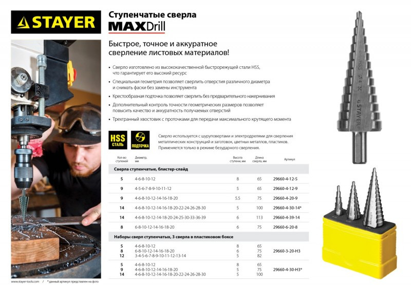 Инструмент STAYER это качество и надежность, проверенные временем! Максимально ровные и гладкие отверстия в листовых материалах!