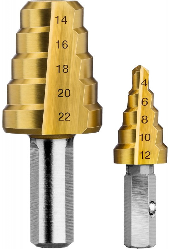 Сверло ступенчатое составное Зубр 4-22мм 11 ступеней, покрытие NiT [29673-4-22]