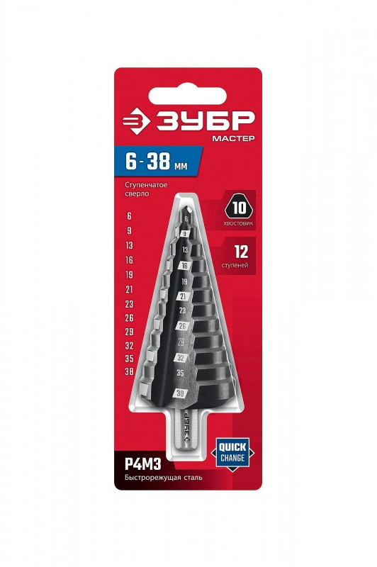 Сверло ступенчатое Зубр 6-38мм 12 ступеней [29665-6-38-12]