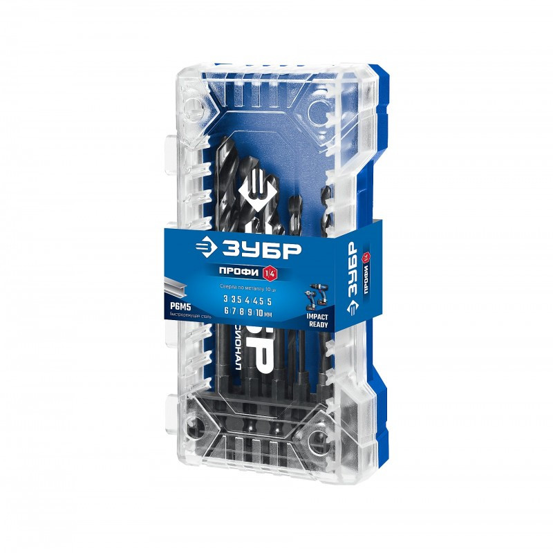 Набор сверл по металлу для винтовёртов и шуруповертов Зубр IMPACT READY НЕХ-1/4" 10 шт [29623-H10]
