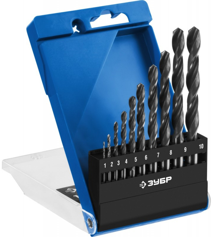 Набор сверл по металлу Зубр ПРОФ-В 10шт (1-10мм) сталь Р6М5, класс В [29621-H10]