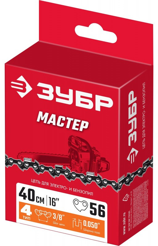 Цепь для электро и бензо пил Зубр 70304-40 тип 4, шаг 3/8", паз 1.3 мм, 56 звеньев