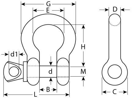 - Омегообразная форма облегчает использование скобы при многоплечевом устройстве такелажа