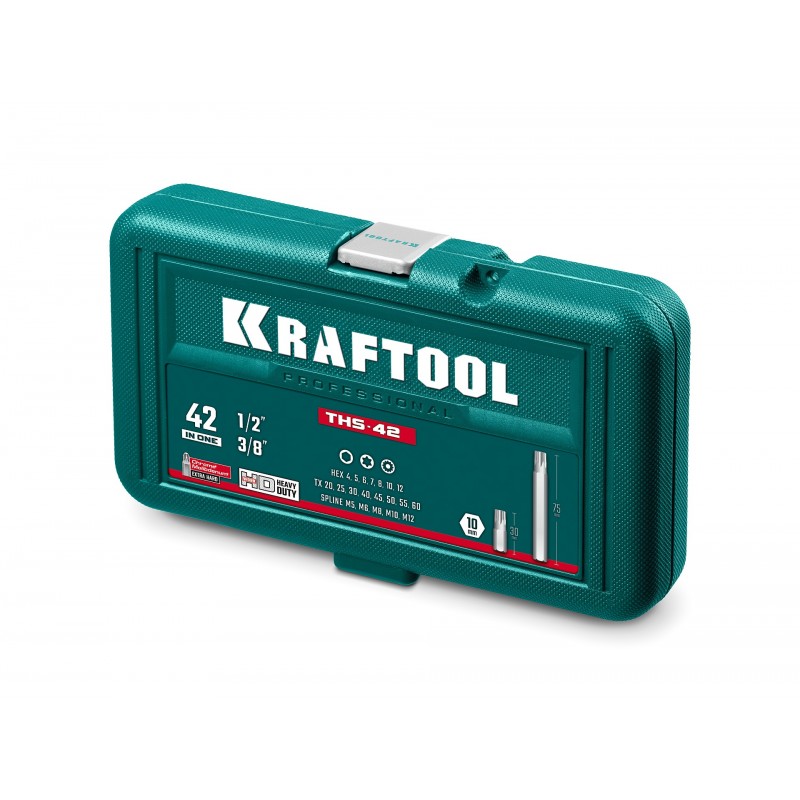 Набор специальных бит KRAFTOOL THS-42 42 шт (HEX, TX, SPLINE) хвостовик 10 мм под квадрат 1/2" [26554]