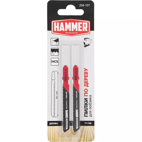 Набор пилок по дереву Hammer Flex JG WD-PL T119B 2пред. (лобзики) [204-107]