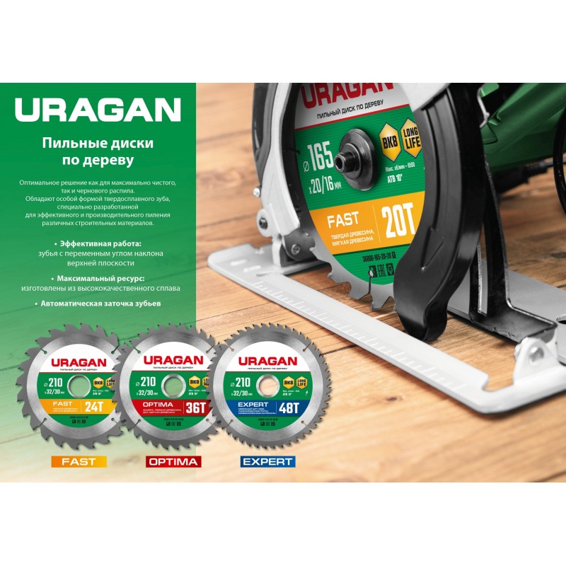 Пильный диск по дереву URAGAN Optima 160 х 20/16 мм 24Т [36801-160-20-24_z01]