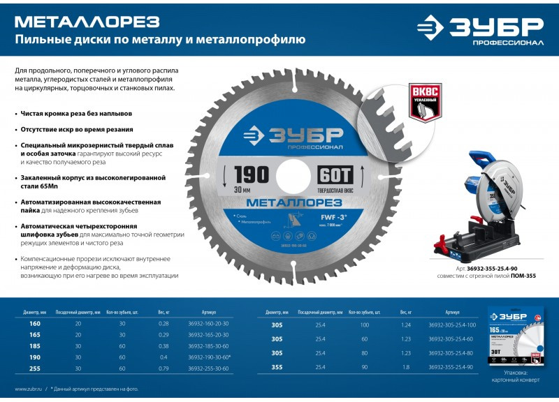 Наличие товара Зубр Металлорез 355х25.4мм 90Т [36932-355-25.4-90]