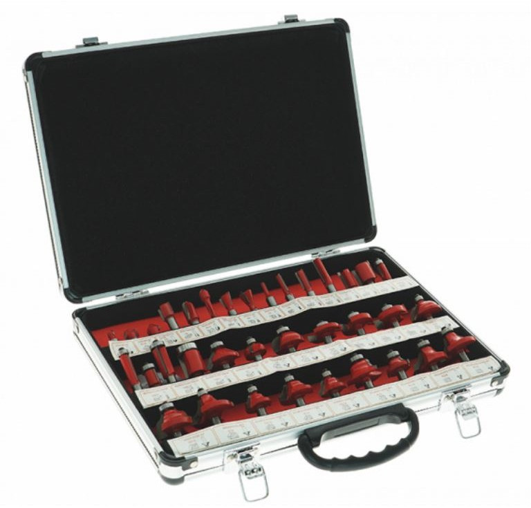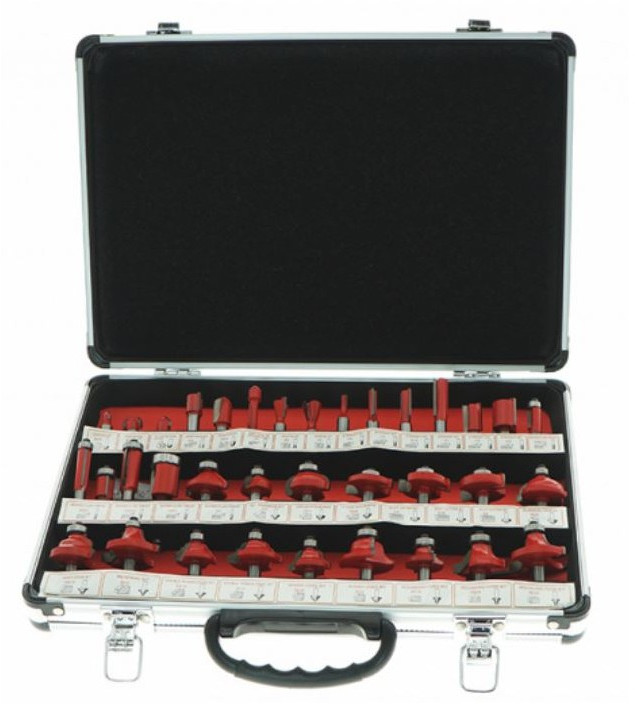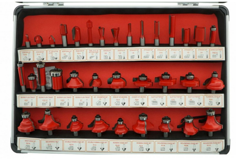 - 14 конструкционыых фрез: V-образные пазовые, прямые пазовые, галтельные, для соединения типа "ласочкин хвост", фреза для анкерных соединений (для уплотнителя), 21 кромочная фреза (с подшипником)