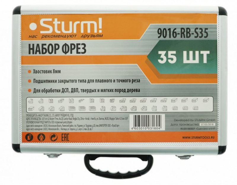 - Набор фрез Sturm! 9016-RB-S35 в алюминиевом кейсе