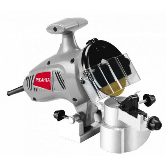 - Безопасная эксплуатация. Щиток из прозрачного пластика защищает оператора от искр, вылетающих в процессе эксплуатации станка для заточки цепей