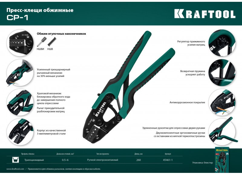 Пресс-клещи KRAFTOOL CP-1 для втулочных наконечников 0.5 - 6 мм.кв [45461-1]