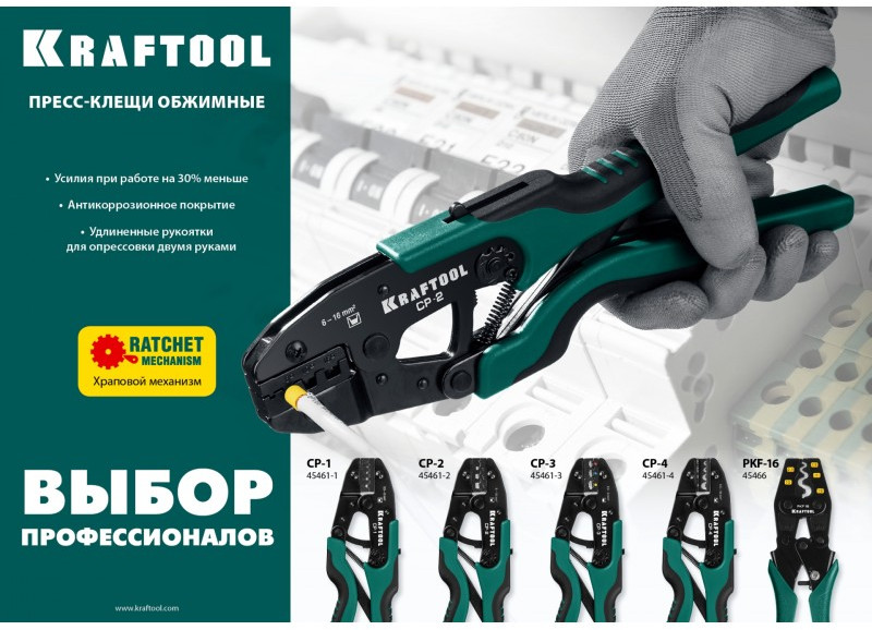 Пресс-клещи KRAFTOOL CP-2 для втулочных наконечников 6 - 16 мм.кв [45461-2]