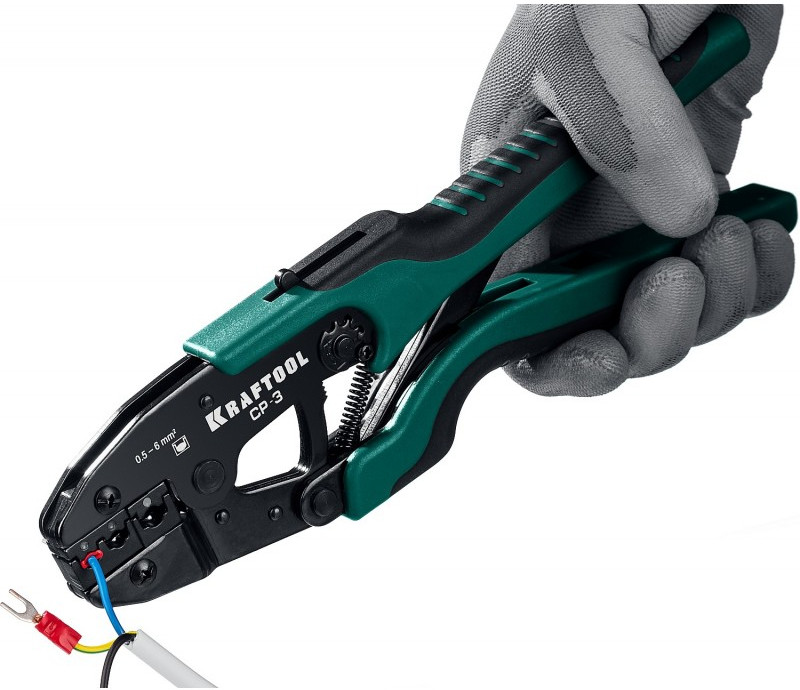 Пресс-клещи KRAFTOOL CP-3 для изолированных наконечников и муфт 0,5 - 6 мм.кв [45461-3]