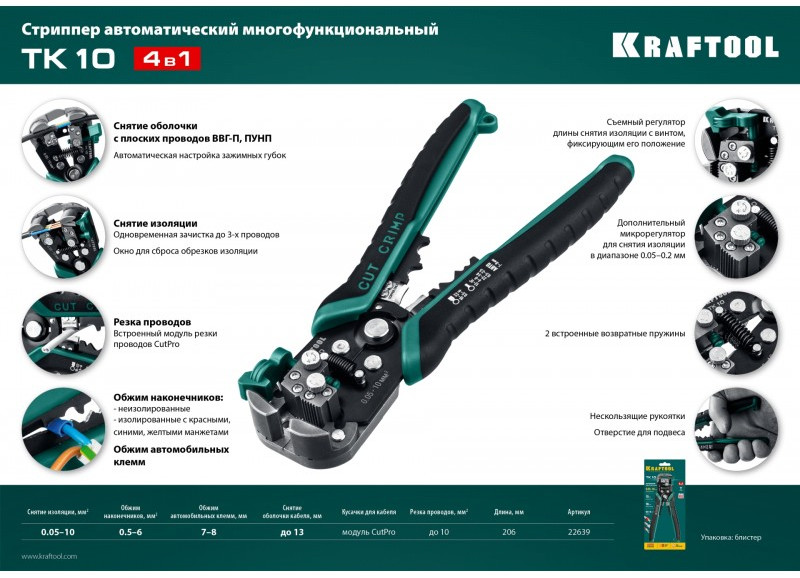 Стриппер автоматический многофункциональный KRAFTOOL TK-10 0.05 - 10 мм2 [22639]