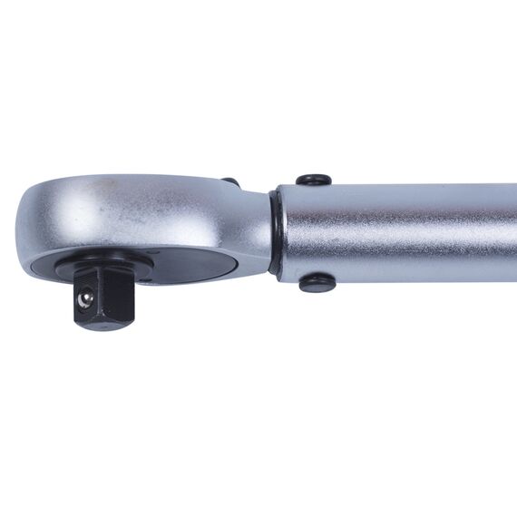 Данный ключ позволяет применять стандартные торцевые головки формата 3/8" (в комплект не входят). При достижении заранее установленного нужного усилия, срабатывает механизм ключа, издавая отчётливый щелчок.