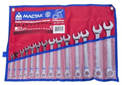 Комплектация данного набора включает ключи практически всех размерностей от 8 мм до 24 мм без пропусков редко встречающихся размеров. Удобное размещение ключей в чехле - каждый ключ в своей ячейке под соответствующим размерности номером. Разместив набор на рабочем месте – на стене, инструментальном стенде или верстаке, вы всегда будете иметь возможность выбрать тот ключ, который необходим в данный момент.