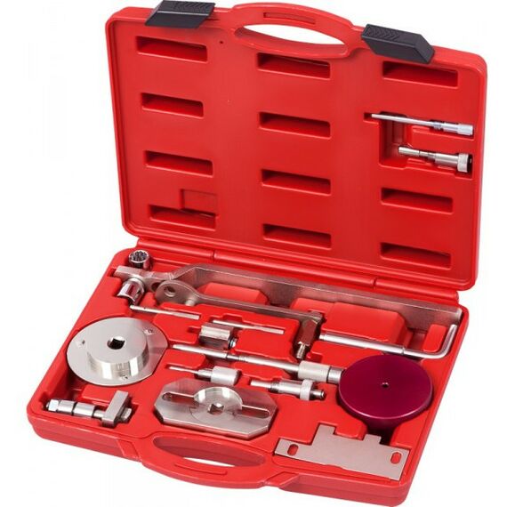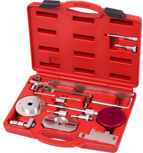 В комплекте инструменты для фиксации коленчатого вала, распределительного вала, инструменты для установки датчиков температуры и масляного насоса.