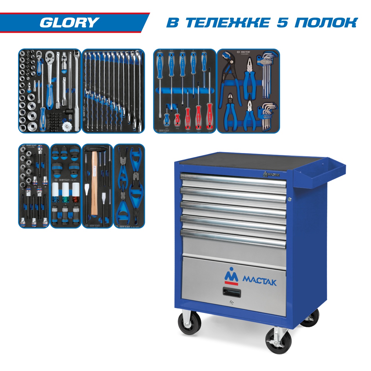 Набор инструментов King Tony 934-152AMB "GLORY" в синей тележке, 152 предмета