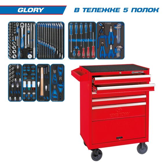 Набор инструментов King Tony 934-152MRV "GLORY" в красной тележке, 152 предмета
