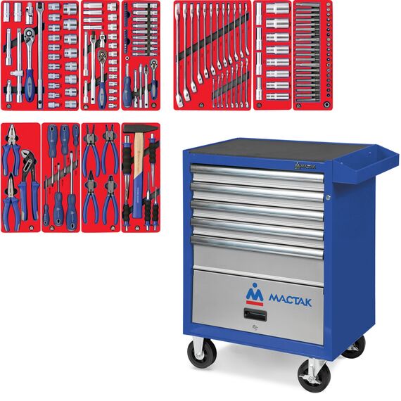 Набор инструментов МАСТАК 52-05186B "СТАНДАРТ" в синей тележке, 186 предметов [52-05186B]