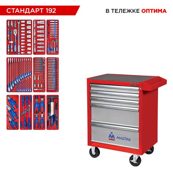Набор инструментов МАСТАК 52-05192R 192 предмета, "СТАНДАРТ 192", в красной тележке