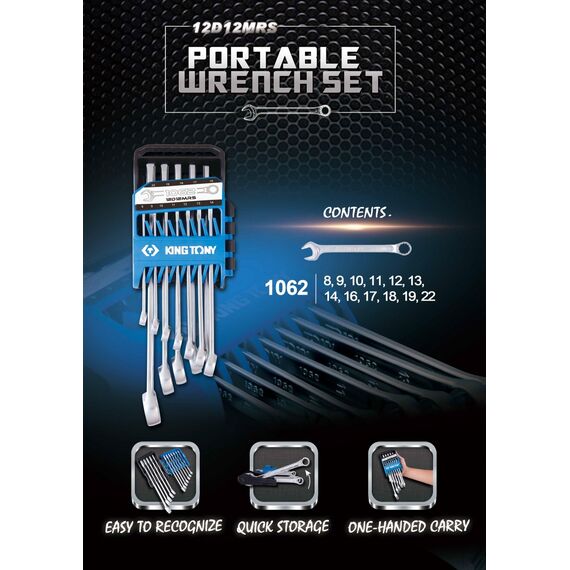 Набор комбинированных ключей King Tony 12D12MRS 8-22 мм, 12 предметов
