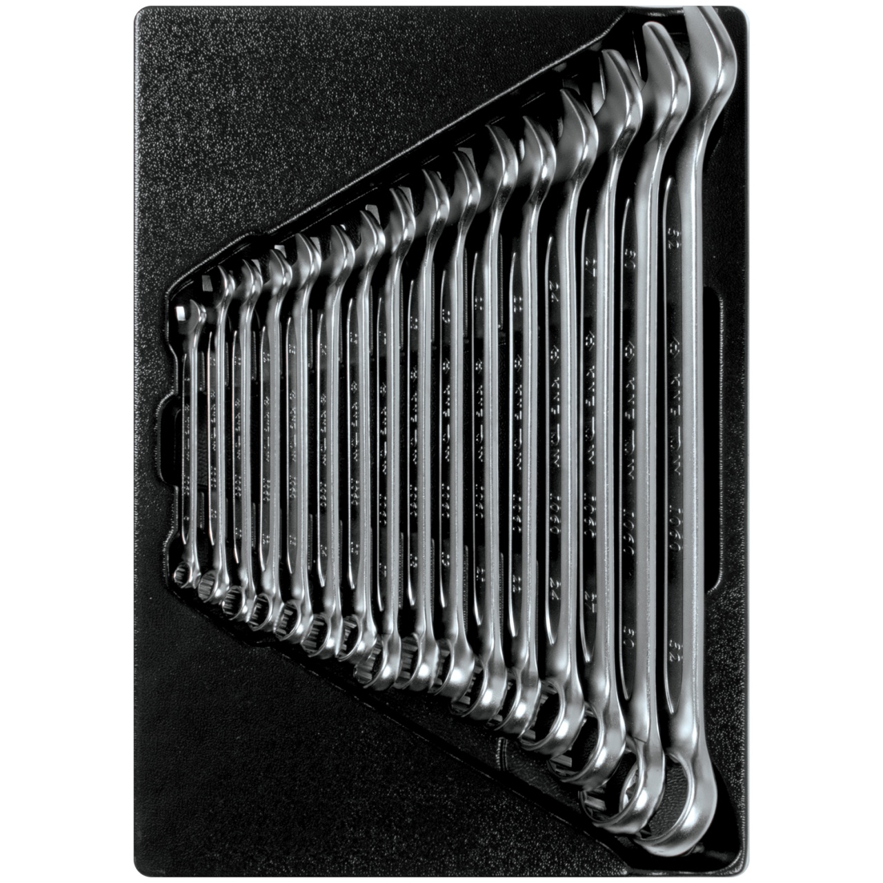 Линейка размеров ключей, входящих в набор, включает в себя наиболее часто встречающиеся размеры. На ключи комбинированные KING TONY распространяется пожизненная гарантия, что даёт возможность применения их в профессиональных целях. Материал ложемента – ПВХ (поливинилхлорид). Изготовлен специально для комплектации инструментальной тележки.