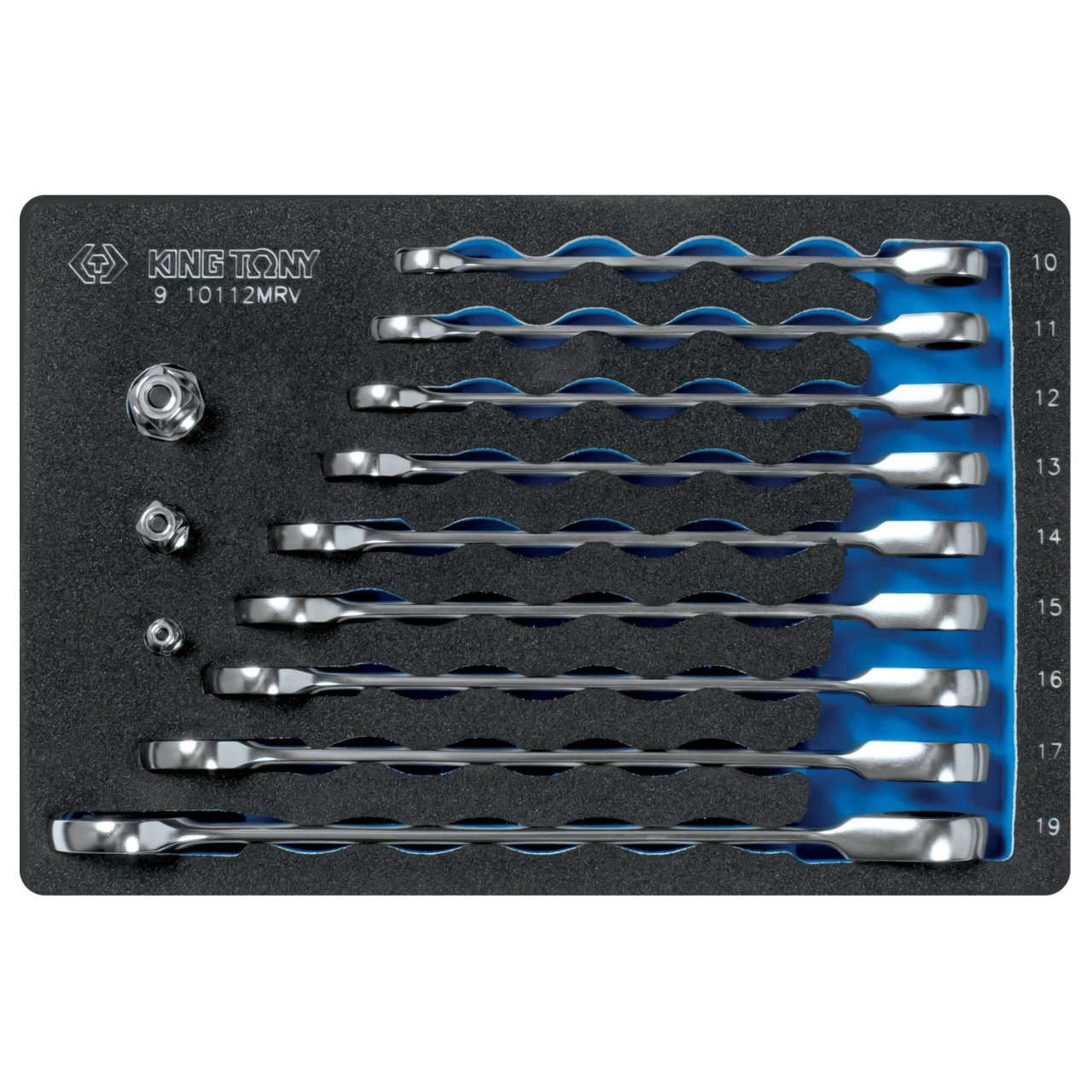 Набор комбинированных трещоточных ключей King Tony 9-10112MRV 10-19 мм, ложемент, 12 предметов