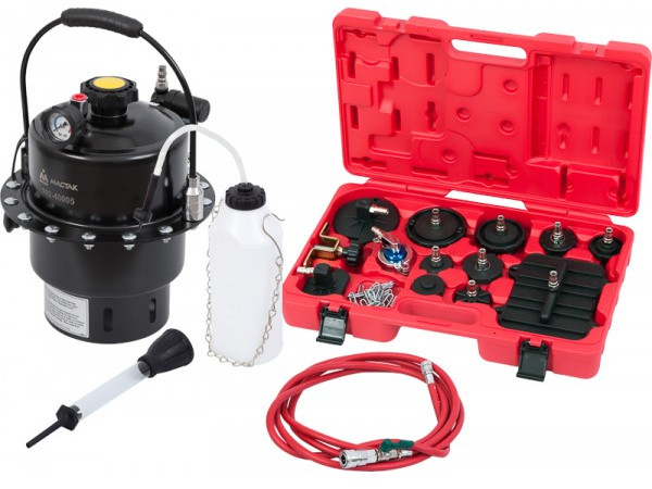 Набор приспособлений для замены тормозной жидкости МАСТАК 102-40005 6 л, комплект крышек адаптеров, 15 предметов