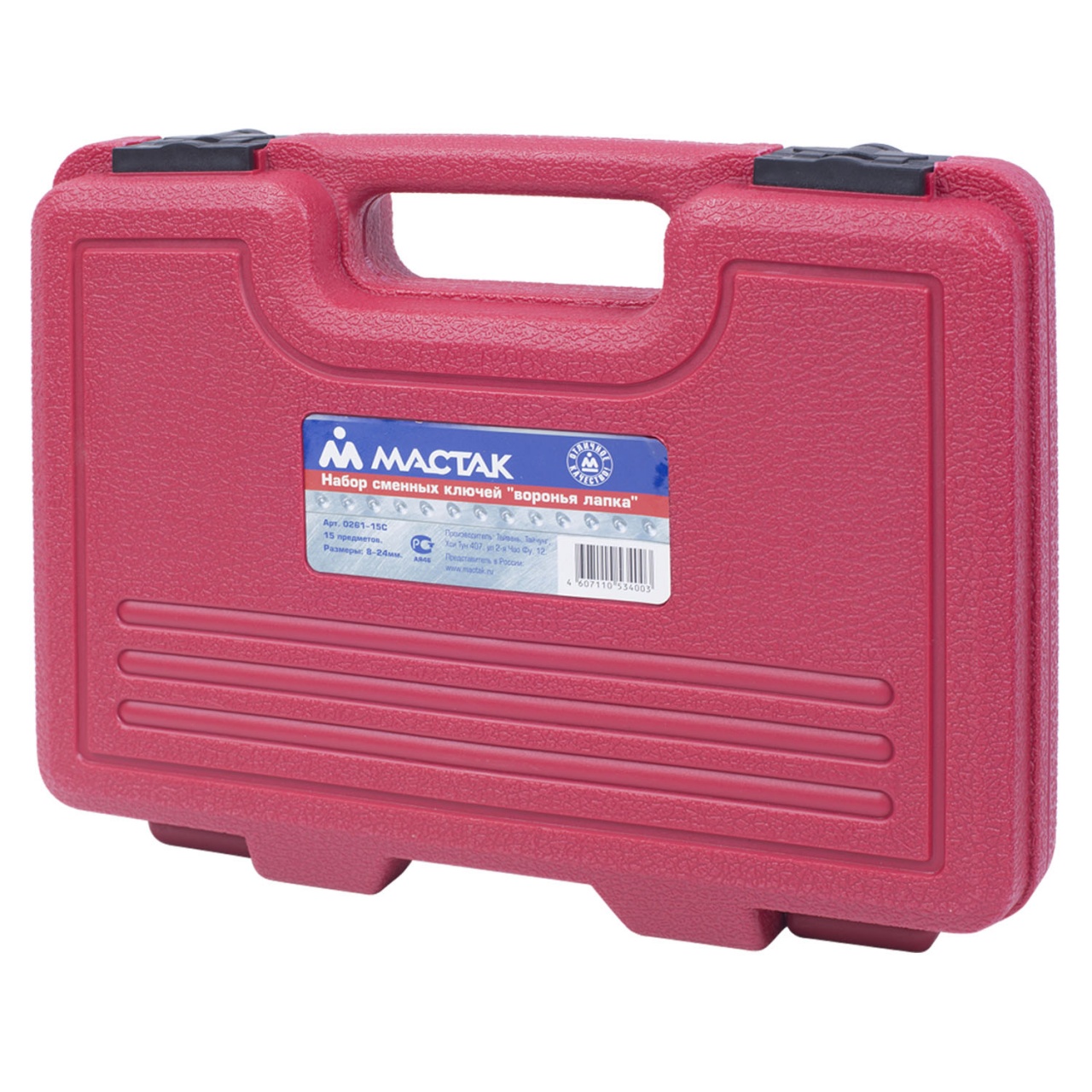 Набор разрезных ключей МАСТАК 0261-15C 3/8"&1/2" (воронья лапка), 8-24 мм, кейс, 15 предметов