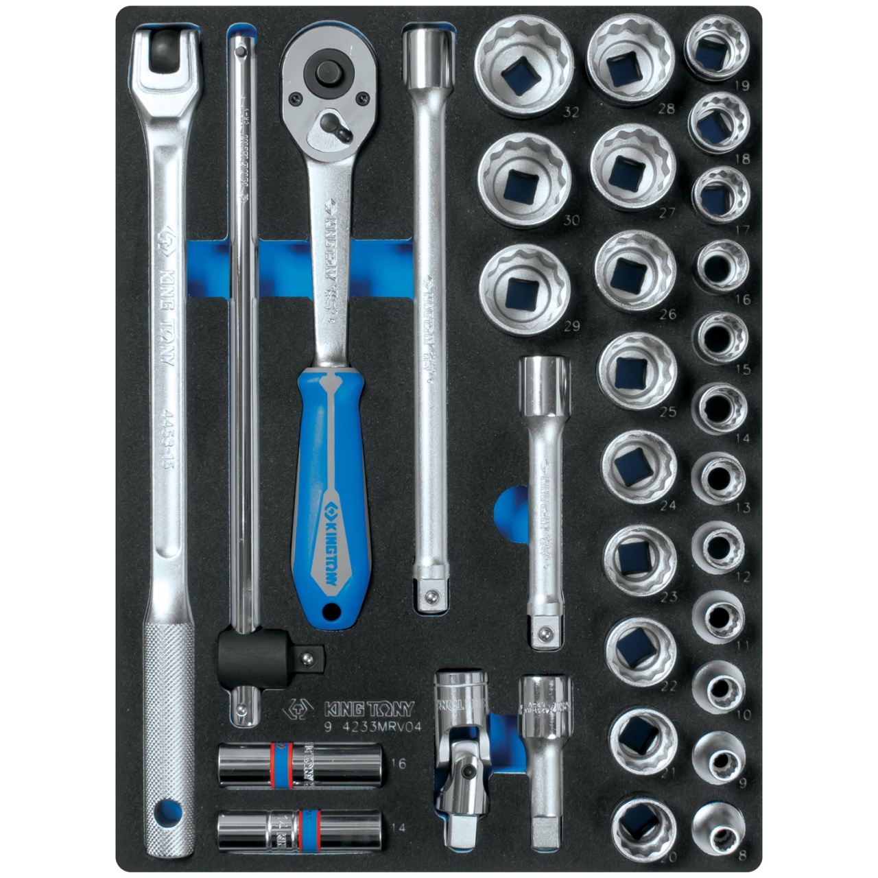 Набор торцевых головок King Tony 9-4233MRV04 1/2" с принадлежностями, двенадцатигранные, ложемент, 33 предмета