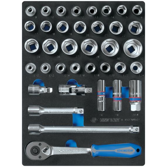 Набор торцевых головок King Tony 9-4537MRV01 1/2" с принадлежностями, шестигранные, ложемент, 37 предметов