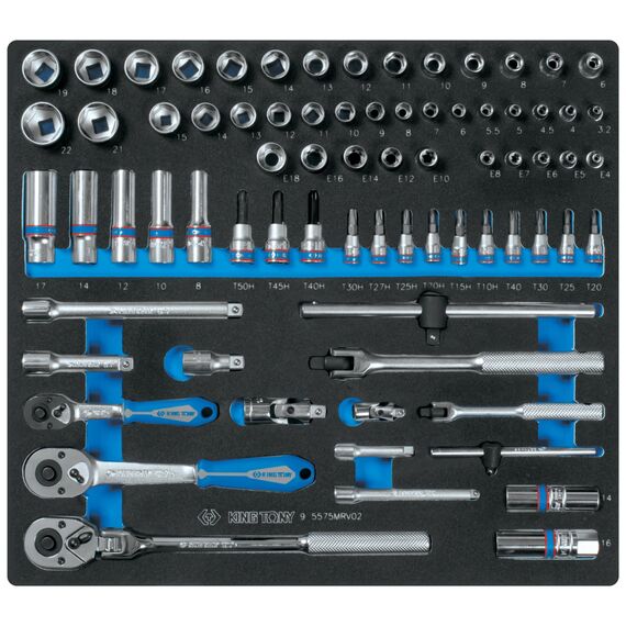 Набор торцевых головок King Tony 9-5575MRV02 1/4", 3/8" с принадлежностями, ложемент, 75 предметов