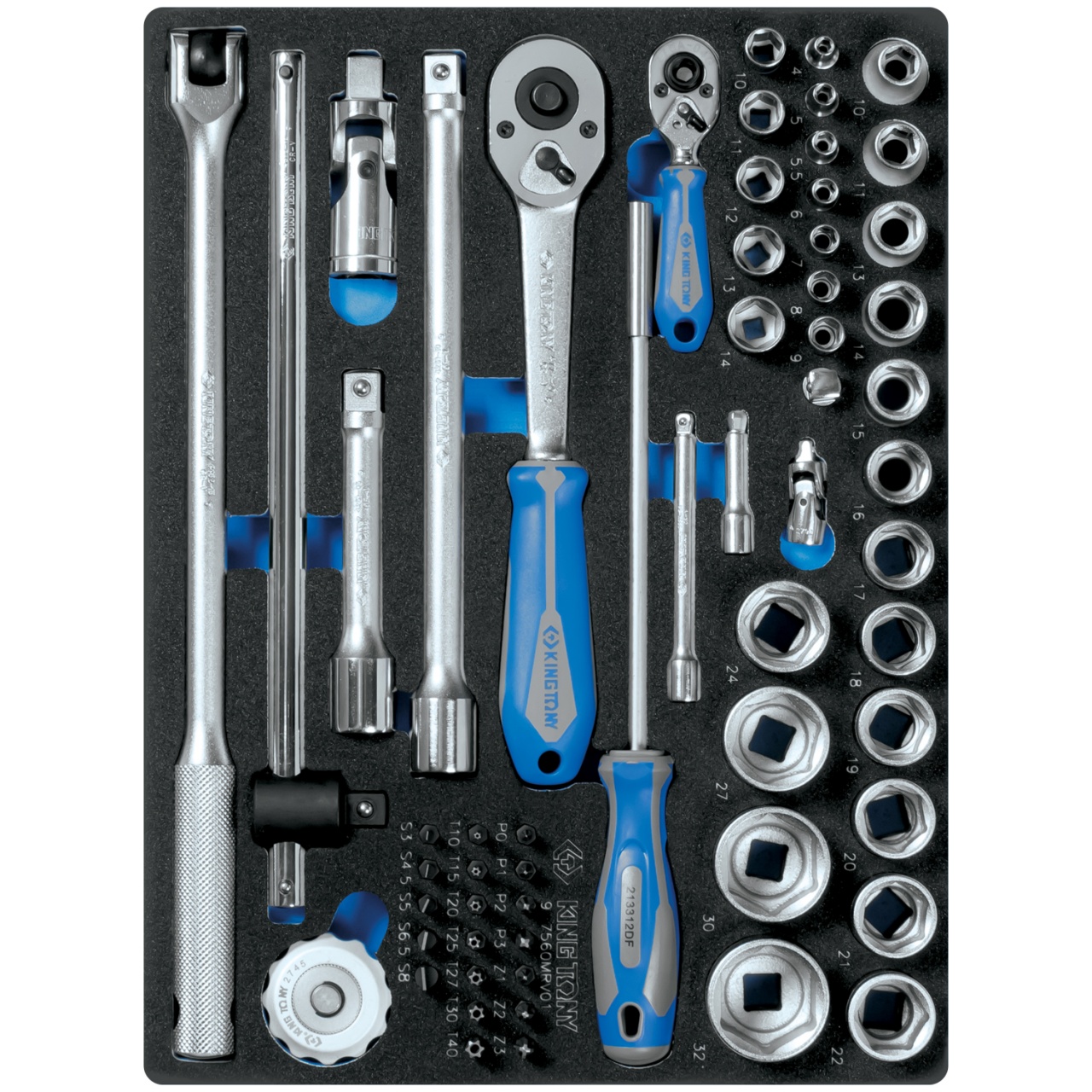 Набор торцевых головок King Tony 9-7560MRV01 1/4", 1/2" с принадлежностями, ложемент, 60 предметов