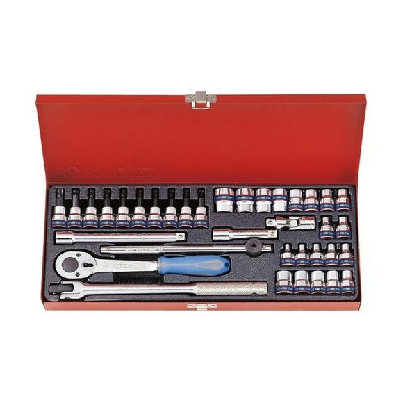 Набор торцевых головок с принадлежностями, состоящий из 36 предметов.