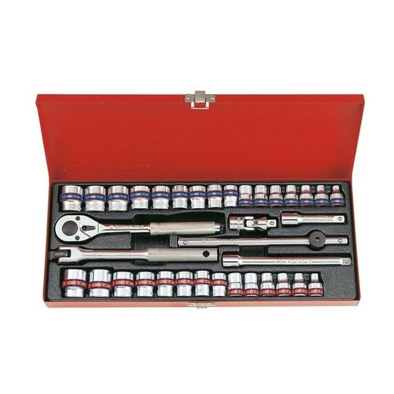 - Головки торцевые подробно: 3/8": 6, 7, 8, 9, 10, 11, 12, 13, 14, 15, 16, 17, 19, 20, 21, 22 мм; дюймовые 3/8": 1/4", 5/16", 11/32", 3/8", 7/16", 15/32", 1/2", 9/16", 19/32", 5/8", 11/16", 3/4", 13/16", 7/8"; удлинитель 3/8": 75, 150 мм; вороток с шарниром 3/8": 215 мм; вороток т-образный 3/8": 200 мм; трещетка 3/8": 32 зуба; карданный шарнир 3/8"