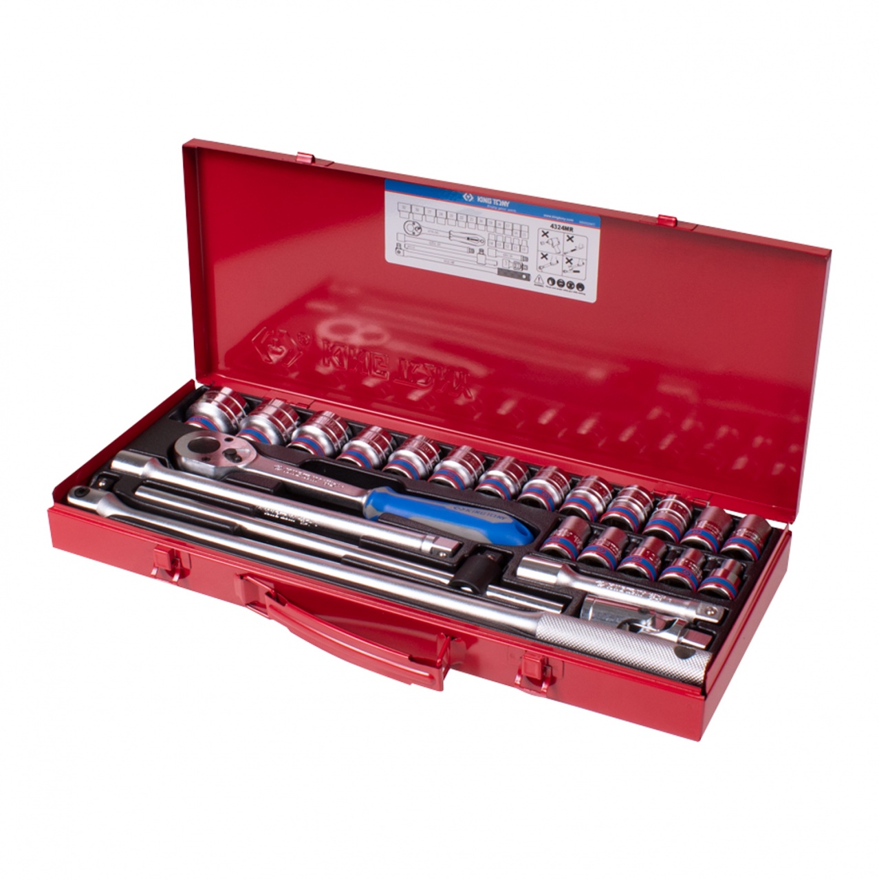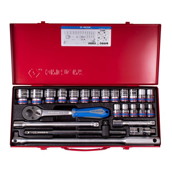 Набор торцевых головок с принадлежностями King Tony 4324MR 1/2", шестигранные, 10-32 мм, 24 предмета