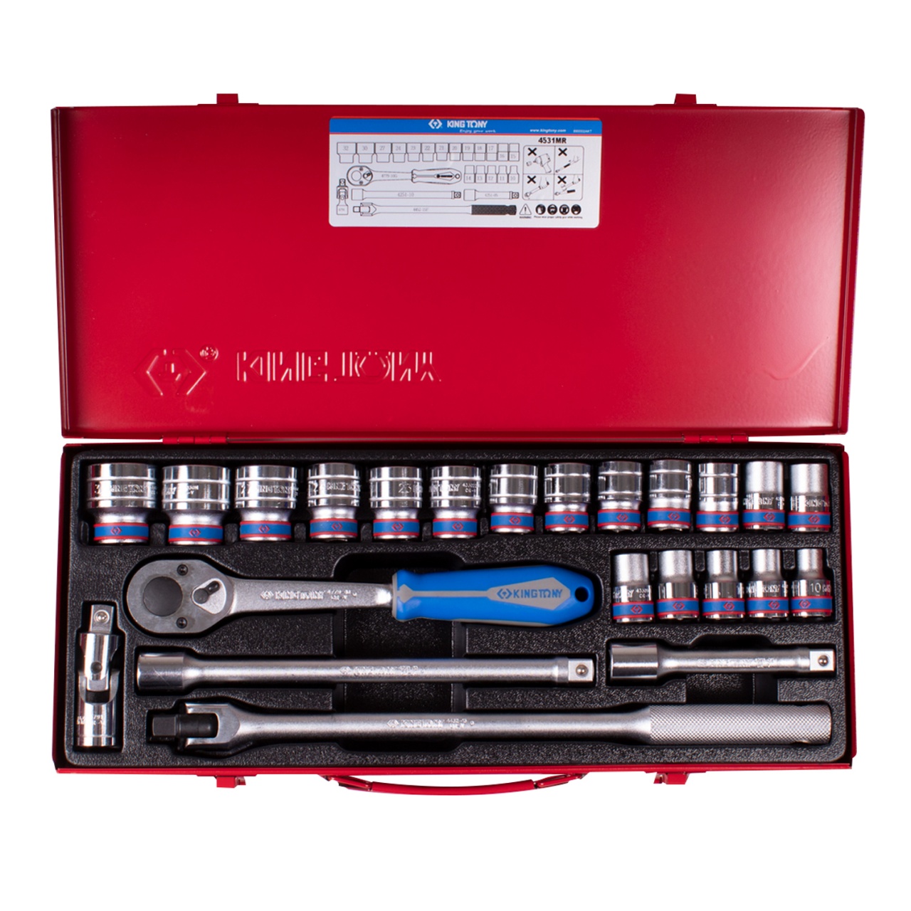 Набор торцевых головок с принадлежностями King Tony 4531MR 1/2", шестигранные, 10-32 мм, 23 предмета