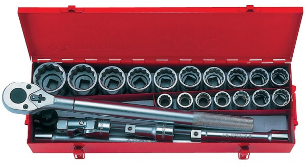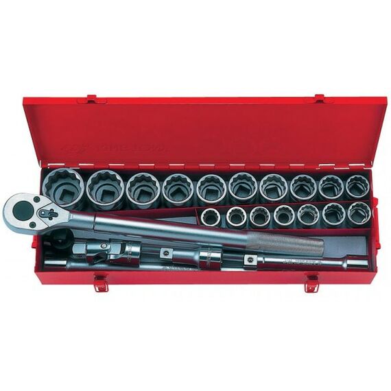 - Набор торцевых головок с принадлежностями 3/4", двенадцатигранные, 22-50 мм, 23 предмета.