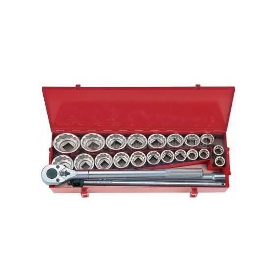 Набор торцевых головок с принадлежностями King Tony 6224CR 3/4", двенадцатигранные, 22-50 мм, 1"-2", 24 предмета