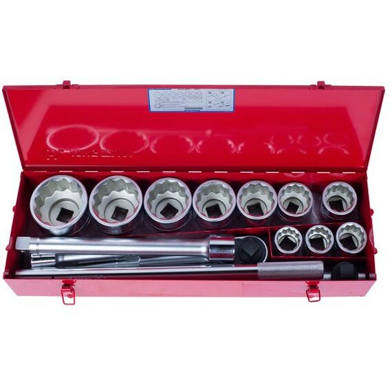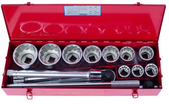 - Головки торцевые подробно: 1": 1-7/16", 1-1/2", 1-11/16", 1-7/8", 2", 2-1/4", 2-3/8", 2-5/8", 2-15/16", 3-1/8"; удлинитель 1": 200, 400 мм; вороток т-образный 1": 630 мм; трещетка 1": 24 зуба