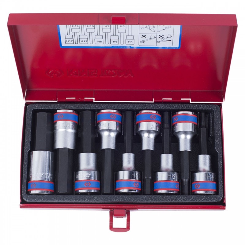 Набор торцевых насадок King Tony 4120PR 1/2", Hex, 4-17 мм, L = 80 мм, 9 предметов