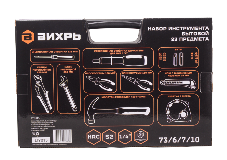 Набор инструмента бытовой Вихрь 23 предмета, в кейсе