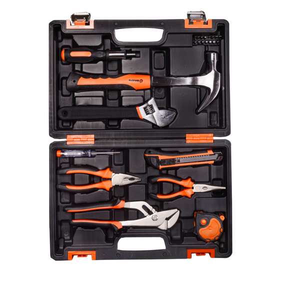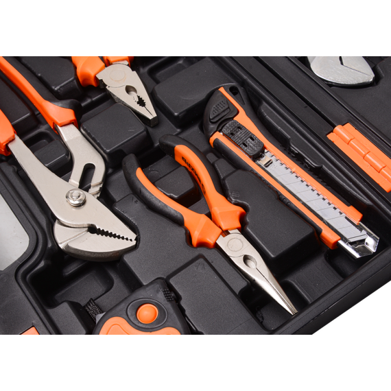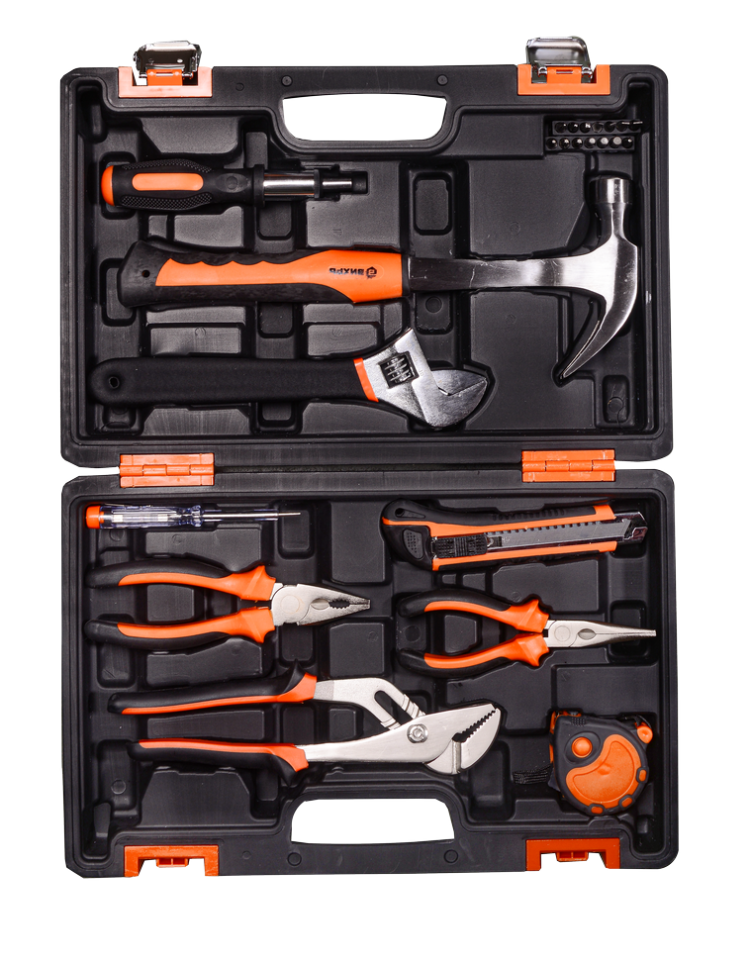 Набор инструментов пригодится дома, на даче, в гараже. Все предметы размещены в ударопрочном пластиковом кейсе.