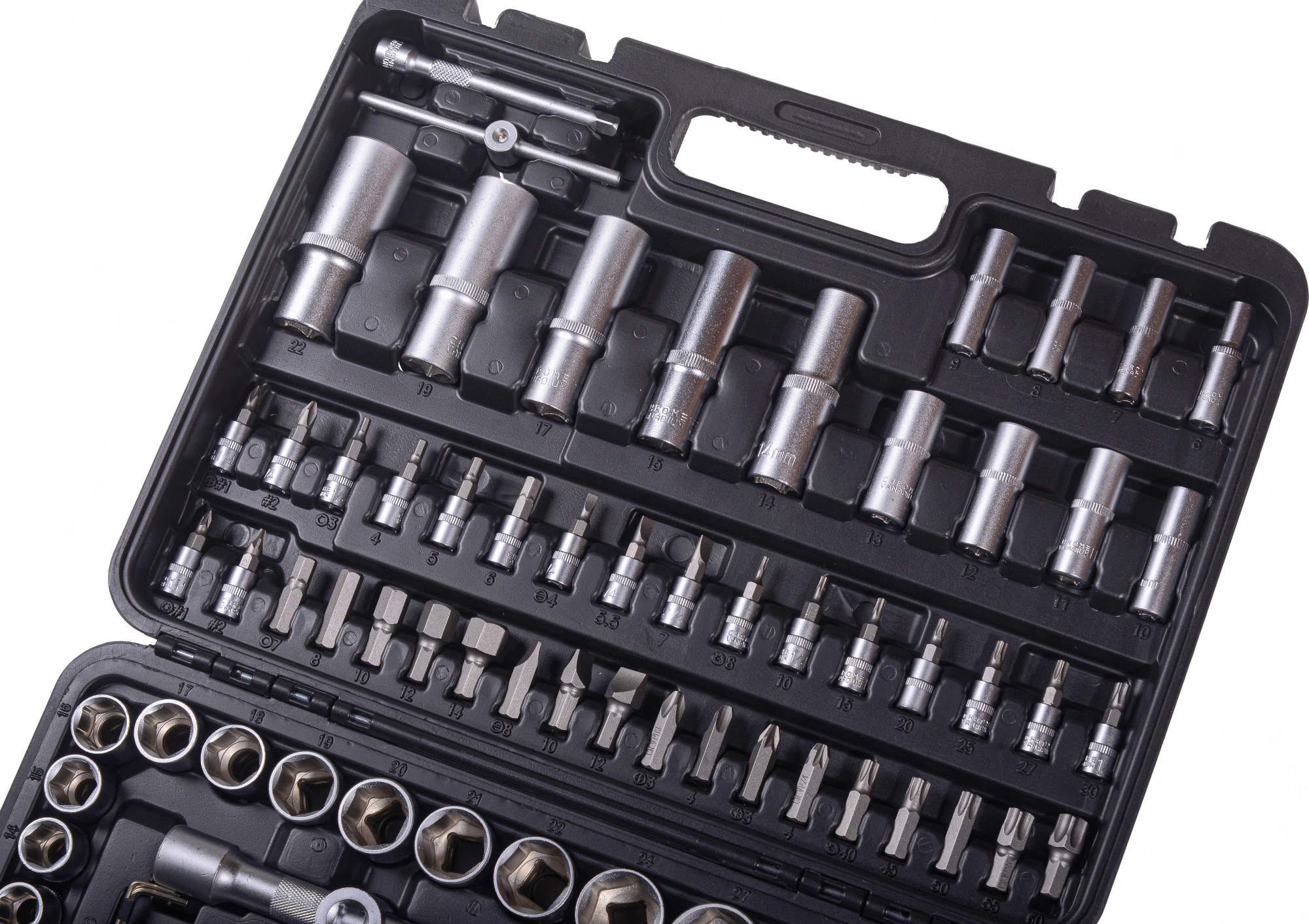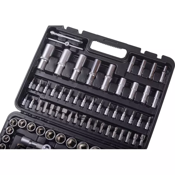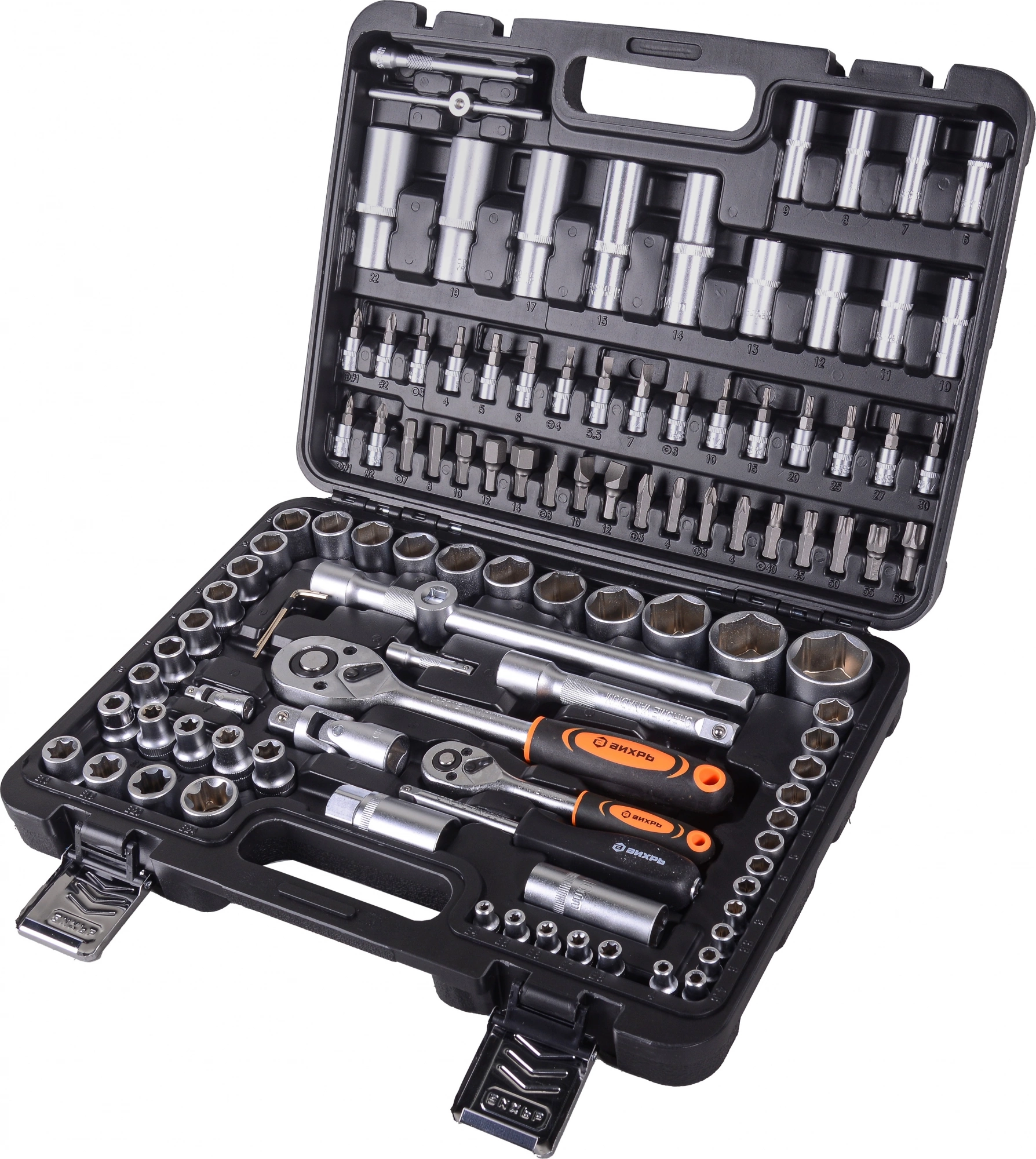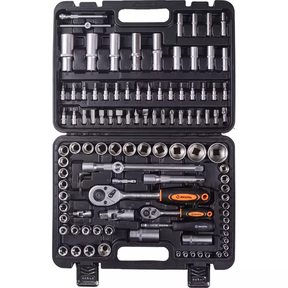 | Дополнительно в наборе, 1 / 4"DR | Удлинители 50, 100 мм.вороток Т-образный, карданный шарнир, отвертка-битодержатель, трещотка |