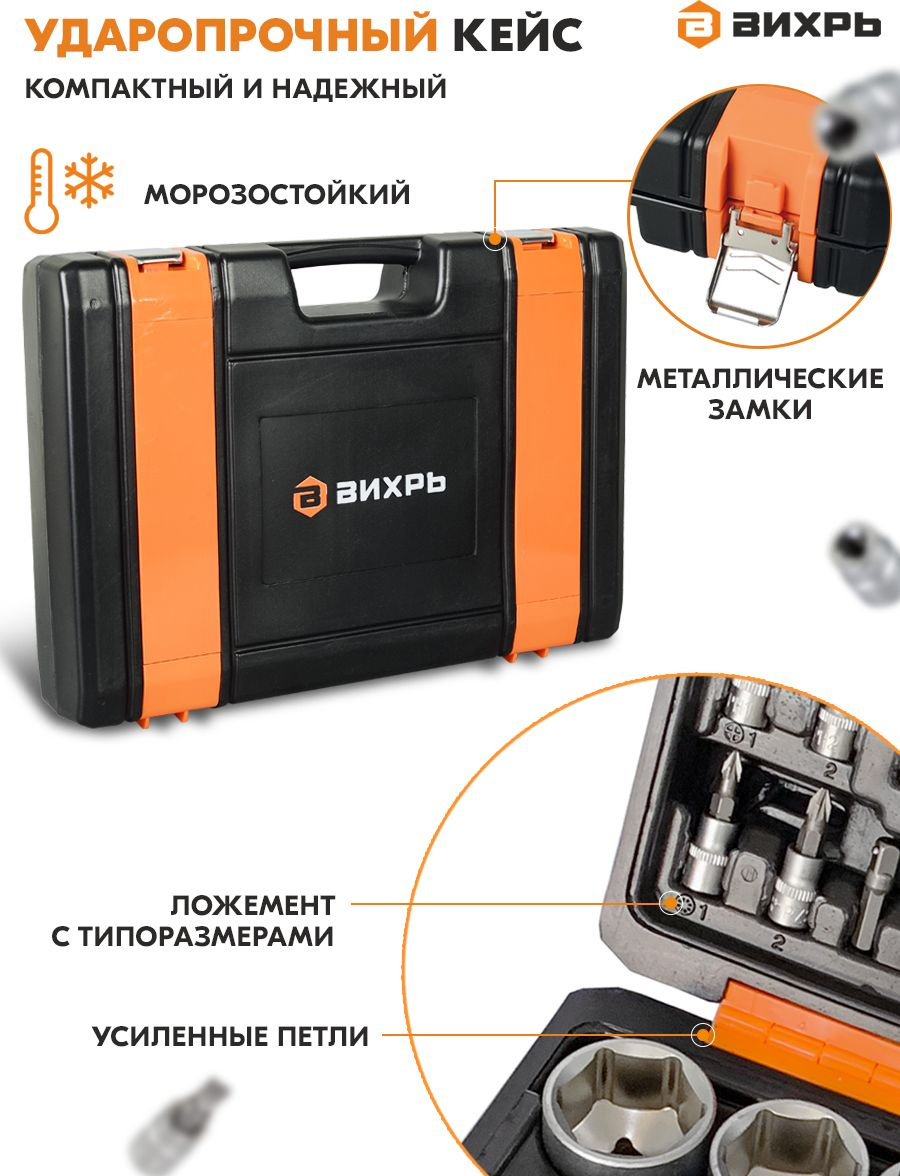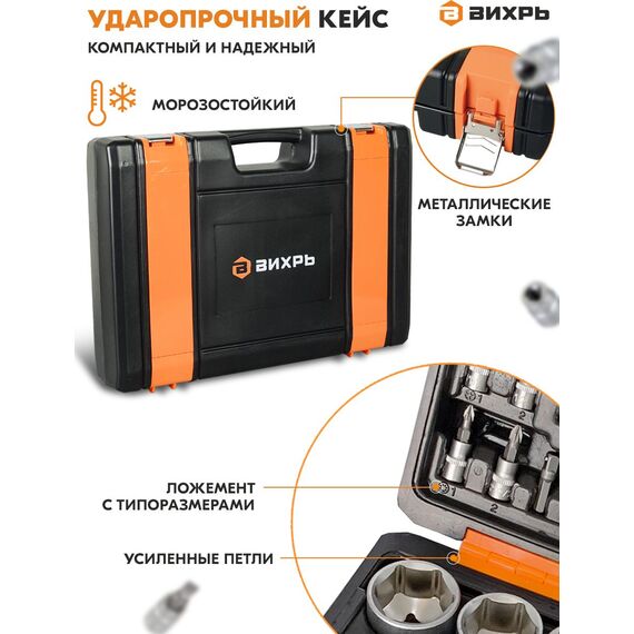 | Комплектация | жесткий кейс, набор бит, набор головок |